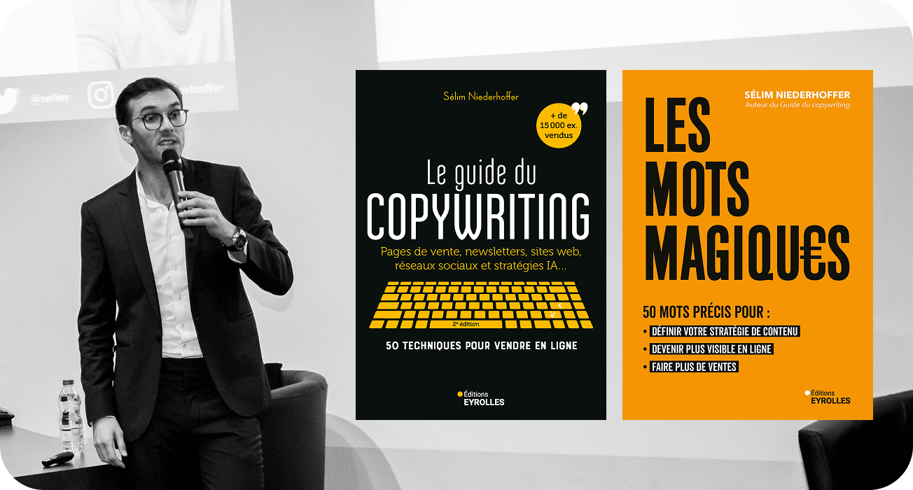 Auteur de 5 livres publiés dont Le guide du Copywriting chez Eyrolles, #1 des ventes, 15.000 exemplaires vendus.