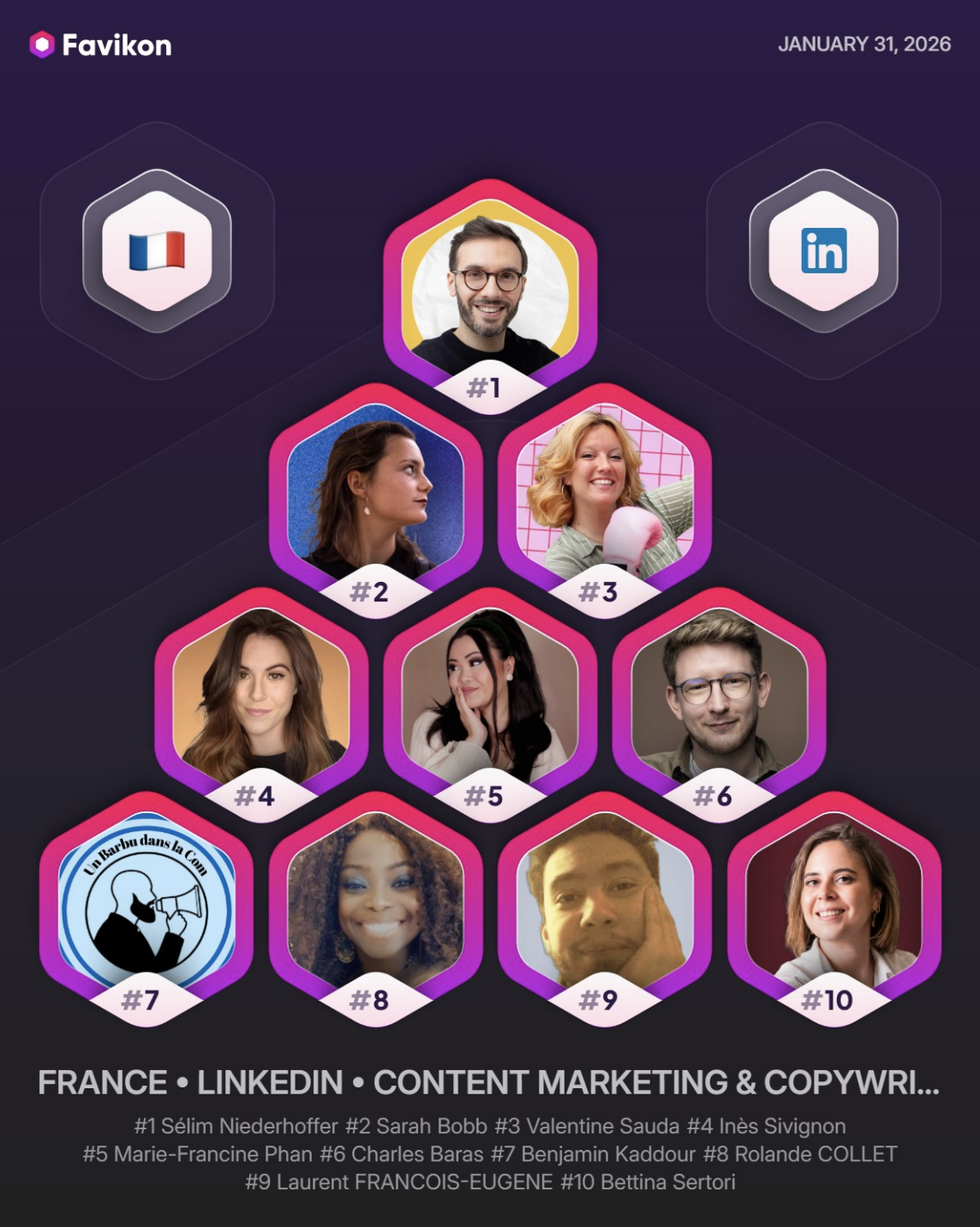 Sur LinkedIn ? J’ai été le premier copywriter à obtenir le badge «Top Voice» sur le copywriting (LinkedIn a depuis supprimé ces badges «Top Community Voice»).